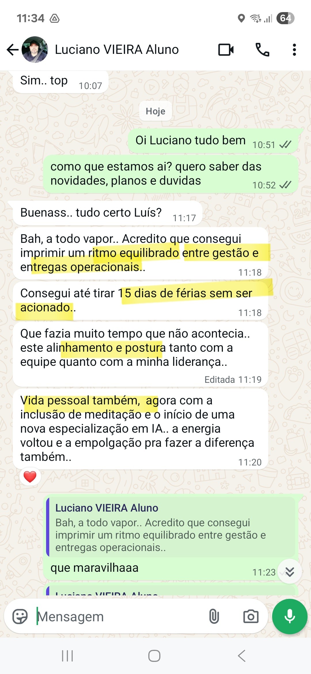 "A mudança refletiu também na minha vida pessoal, com mais equilíbrio, menos conflito e uma comunicação clara"